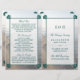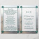 Estas modelos duplas são perfeitas para qualquer casal planejando um casamento romântico pelo mar. A design apresenta uma escura escura esverdeada, verde, com cantos de movimento de vieiras em uma cena de praia arenosa. O design simples pode ser personalizado para se adequar ao seu evento especial e será a ordem de serviço perfeita para qualquer festa temática na praia, incluindo chás de panela, noivados, chás de casamento, festas de aniversário e muito, muito mais.