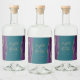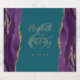 Este rótulo elegante e moderno para garrafa de licor de casamento apresenta um design de ágata em aquarela roxa com acabamento em glitter dourado falso. Personalize-o com os nomes da noiva e do noivo em escrita cursiva dourada sobre um grande e comercial em um fundo azul turquesa, com a data do casamento abaixo.