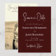 Celebre seu amor com este cartão de Save the Date de casamento rústico elegante em vinhedo — parte da Coleção Casamento Rústico em Vinhedo da FeliseDesigns. Com tons ricos de burgundy e marfim, e um filtro de foto sépia para a foto do casal no verso, este design elegante captura o charme de uma celebração no campo de vinho. Opção de remover ou alterar o texto se não funcionar com a foto ou tema.