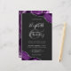 Uma design de cor d'água púrpura, aparada com brilho falso prateado, aparece em dois cantos deste elegante design. Personalize-o com os nomes dos casais em cinzas prateadas, guiando-o por uma grande e grande cinza. Adicione os detalhes do casamento em quadrinhos e fontes itálicas em um fundo branco. O verso apresenta um design de agata prateado e roxo correspondente.