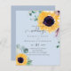 Bonito cor d'água amarela Girassóis aparecem neste convite de casamento moderno ou guardam o item de data. Os campos de modelo de texto de ambos os lados garantem que você possa adicionar todos os seus detalhes adicionais, incluindo rsvp, registro de presentes, detalhes de recepção, instruções e muito mais.