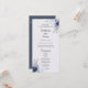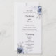 Isso é personalizável e um elegante programa de casamento floral azul e branco, empoeirado, com flores azuis-claras e azuis-marinho, em um design azul-claro de fundo. É perfeito para uma celebração de casamento no inverno floral.