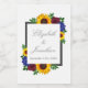 Design apresenta girassóis, rosas e flores silvestres elegantes com uma paleta de cor amarela, burgundy e azul ouro. Design também apresenta uma estrutura de cinza de carvão. Você pode alterar a cor de fundo para a cor de sua escolha ou deixá-la definida como branca.