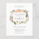 Trendy floral, convites de casamento com peônias de aquarela e rosas em tons de rosa-pincel, pêssego e creme com folhagem de eucalipto moldando os nomes dos casais. Seus detalhes são exibidos com tipografia elegante. Perfeito para casamentos de primavera. Como parte da seleção do orçamento aqui no Zazzle, esses convites vêm em tamanhos limitados e estoques de papel. Se você precisar de um tamanho ou estoque de papel diferente, esse design pode ser transferido para um formato padrão 5x7 usando a ferramenta de transferência design para obter mais opções.