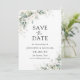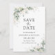 Casamento Floral Eucalyptus Salve Os Cartões De Data. Este convite de casamento na moda e elegante apresenta um lindo verde floral de ouro de cor aquosa, pintado manualmente. Localize itens correspondentes na Coleção de Verduras Florais Douradas Eucalyptus com Aquarela.