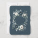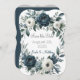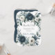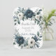 Um casamento sofisticado com um marinho azul-d'água, coroa corada floral, enfeitado com peonias, rosas e verde eucalipto em tons de azul marinho, verde e marfim. A design é aprimorada por uma caixa de cinza prateada, impressa abaixo da coroa, com layout de texto de fonte moderno. O verso do convite continua o tema com arranjo floral correspondente para um olhar coeso e elegante. Perfeito para casais que buscam eterno e papelaria de casamento clássico.