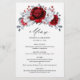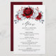 Cartão de cardápio real vermelho-real de prata, com elegante buquê de vermelho-rubi real, cremson, prata, flores rosa de cor branca pura e folhas de eucalipto. Entre em contato comigo para obter ajuda sobre a personalização ou se você precisar de outro produto com este design.