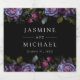 Etiquetas de licor floral Elegante que incluem bordas superiores e inferiores de flores de burlu e púrpura com folhas verdes e bagas escuras. Personalize as etiquetas das garrafas de licor de casamento com seus nomes e datas de casamento em letras brancas. As etiquetas de garrafas de licor floral roxo foram desenhadas para coordenar com a nossa coleção de casamento Floral Moody Gothic.