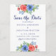 Esses convites para casamento elegantes e modernos patrióticos apresentam lindas flores aquáticas em tons vermelhos, brancos e azuis, fazer-os a escolha perfeita para o casamento de 4 de julho ou casamentos militares. A design é patriótica e floral, alcançando um equilíbrio perfeito entre os dois temas. Visite nossa coleção patriótica de casamento para convites patrióticos de casamento, favores de casamento e suprimentos de festas. COPYRIGHT © 2023 Judy Burrows, Black Dog Art - Todos Os Direitos Reservados. Casamento Floral Patriótico Salvar a Data Convite