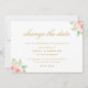 Adiamento de casamento/mudança personalizado de datas Cartão de anúncio com elegante design floral cor-de-água rosa.