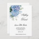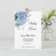 Este casamento para salvar a data é mostrado em um layout moderno com uma adorável impressão de cor d'água de hydrangea azul. Mostrada na escolha do papel correspondente à assinatura. Selecione a sua escolha de papel. Personalize este item alterando o texto do exemplo para o seu com este modelo. Imagem licenciada