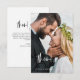 Cartões de Agradecimento de Casamento Escritos à Mão que têm uma foto na frente e no verso. Os cartões de agradecimento contêm uma tipografia moderna de letra cursiva branca e preta que são elegantes, simples e modernos para usar após a sua celebração de casamento minimalista simples.