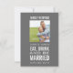 Cartões de RSVP de casamento com foto moderna Comer, Beber e Casar Cinza. Elke Clarke©. Foto de amostra apenas. Substitua pela sua. Adicione o texto de RSVP do convite de casamento no verso do cartão. Use as sugestões ou selecione "personalizar" para mais opções de edição.