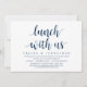 Script moderno em tema azul-navy sofisticado, cartão de convite de casamento fuga (Almoço Conosco, Os Recém-Casados). É perfeito para a sua celebração casual de casamento fuga à beira do lago.