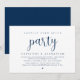 Cartão de convite de casamento fuga temático Moderno Azul-Marinho em letra cursiva, perfeito para o seu casamento / celebração pós-casamento. Adicione seus detalhes em fonte / letra preta correspondente.
