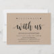 Casamento Fugitivo, celebre conosco cartão de convite. Este cartão de convite temático de casamento rústico kraft é perfeito para o seu casamento e festa de celebração pós-casamento. Adicione seus detalhes em fonte / letra preta correspondente.