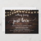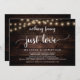 Linda festa de celebração de amor sem luxo, Anúncio de casamento / Cartão de convite, em design de madeira rústica de fazenda, luzes de corda. Isto é perfeito para o seu casamento e festa de celebração pós-casamento. Adicione seus detalhes em letra / caligrafia correspondente.