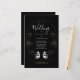 Um na moda, gótico, convite de casamento em papel orçamentário (papel mais fino) em preto, tons de ouro e branco. Ele apresenta o casal representado como dois crânios em um quadro floral com rosas. Este convite mistura um humor memorável com elegância, deixando-te design o teu casamento como quiseres. Simplesmente personalize o texto, adicione este convite ao seu carrinho, depois faça um casamento que veja além da superfície e corte no que está abaixo. (A opção de papel satin é muito fina e outras opções de papel são sugeridas.) Skull Floral Black Gothic Weding Invitation Holidayday Design | ©Melissa Patton - Designer