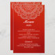 Carteira de cardápio de casamento encantadora em fundo crimson/sunset com tipografia branca e mandala branca. Simples e elegante com lindas cores. Parte da coleção Hindu Elegant Crimson paisley Indian https://www.zazzle.com/collections/elegant_simple_crimson_paisley_indian_hindu-119521932668962471?rf=238642071267668202 Crimson, sunset, laranja red