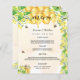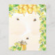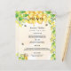 Um cardápio de casamento para um casamento no verão. Abelhas bonitas, florais amarelos e mel pingando de favos. Personalize e adicione seus nomes, data e menu de casamento. A palavra Menu é escrita com um script de estilo alfanumérico com letra de tendência com alternâncias.