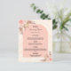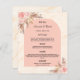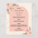 Um cartão de cardápio do estilo boêmico elegante. Personalize e adicione seus nomes, data e menu de casamento. impressão de mármore do ouro como fundo. Decorado com florais cor-de-rosa pincelado e grama pampas.