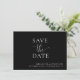 Anuncie seu próximo casamento com este cartão de anúncio minimalista. Este cartão apresenta texto simples e um tema preto-e-branco. Personalize o texto na parte frontal e traseira do cartão para compartilhar os detalhes do seu próximo casamento. Visite minha loja para ver outras opções de cores que combinam com as suas cores de casamento. #minimalistcasamento #savethedate #wedingplan