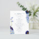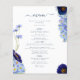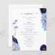 Lindas flores silvestres de cor aquática de vassoura e folhagem em azul-esbranquiçado, azul-de-cavilha, marinho, roxo e verde, ideais para um único primavera ou dia de verão do cardápio do casamento. A escrita elegante da tipografia moderna, em azul marinho, complementa a trabalho de arte impressionante do bô, que inclui flores de milho, papoila, cosmos, esquecem-me nots e uma folhagem delicada. O cardápio de casamento da Boêmia Chic é perfeito para um prado de primavera, casamento de jardim de verão. Arte original da artista Catherine Sweetman