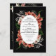 Este elegante convite de casamento combina florais românticos com um fundo negro dramático, criando um design único e sofisticado. A frente apresenta um clássico quadro oval branco rodeado por flores ricas, escamosas e brancas, destacando perfeitamente seus detalhes de casamento em um roteiro refinado e semissformal. O convite expele uma sensação de charme de eterno com uma reviravolta moderna, levemente suja, ideal para casais que procuram fazer uma declaração. No verso, há espaço para incluir um código QR ou site de casamento, permitindo que seus convidados acessem facilmente detalhes adicionais, opções de RSVP e informações sobre acomodações. Este convite combina beleza e funcionalidade, fazer perfeito para casais que querem um caminho inesquecível e na moda para anunciar seu grande dia.