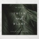 Moody Tropics, rótulo de garrafa de vinho espumante de casamento. Fotografia de fundo com folhas de palmeira tropicais escuras e tipografia branca ousada.