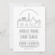 Um convite de casamento único para um casamento acontecendo no belo país da França. Este convite apresenta uma ilustração estilizada do horizonte único da cidade com seu nome embaixo. Esta é seguida pelas informações do dia do casamento em um estilo aberto. No verso do convite está uma cor de cinza profunda para complementar a aparência e o sentimento. Todos os elementos individuais do cartão de convite estão desbloqueados, portanto, sintam-se livres para alterar ou adicionar os detalhes necessários usando a função de personalização. Você pode adicionar uma foto ao verso e adicionar um filtro preto e branco a ele. Estão disponíveis RSVP, bandas de barriga, sacos de tote e muito mais. Divirta-se sendo criativo e fazer seu!