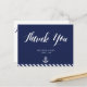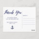 Casamento náutico Obrigado cartões postais com faixas marinho azul e branca, âncora branca e texto branco personalizado - você pode mudar o texto, impresso em fundo azul marinho