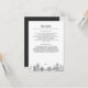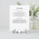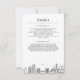 Um cartão minimalista com detalhes para convidados apresentando a silhueta de Brooklyn, Nova York.