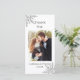 Envie uma nota de obrigados, apreciação e gratidão aos seus amigos e familiares depois de suas núpcias com um Casamento no inverno bonito de Floco de Neve Obrigado Cartão com fotos. Personalize-o com os nomes da noiva, noiva e foto de casamento. Este elegante obrigado de casamento do inverno que você cartões de fotos apresenta um intrincado design de floco de neve com um tom prateado em um fundo branco. Perfeito para um tema clássico de dezembro, janeiro ou casamento no inverno de fevereiro.