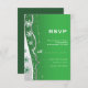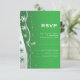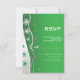Cinzas verdes, prateadas, casamento no inverno branco com flocos de neve com RSVP de resposta/placa de resposta, apresentando uma banda ondulada em cinzas prateadas com estrelas e flocos de neve elegantes sobre fundo verde gradiente. Moderno e contemporâneo, mas adequado para um casamento tradicional. Esta elegante, elegante e na moda modelo é parte de um casamento e é totalmente personalizável. Uma escolha perfeita para o inverno, dezembro ou casamentos de Natal.
