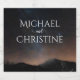 Casamento noturno sob as estrelas. Astrofotografia do céu noturno de uma incrível neve coberta de paisagem com milhões de estrelas no céu e luz brilhante. Coleção de casamento com texto personalizado personalizável.