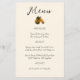 Modelo de cardápio de casamento para um casamento outono. Papel esbranquiçado com escrita negra e moderna. Título "Menu" no topo com duas gourds abaixo - um sinal do outono. Listar a comida de recepção em um parágrafo. O texto de exemplo usa letras maiúsculas para separar as seções. Adicione espaços onde necessário. A parte traseira do papel do barato é laranja.