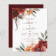 Chic e Moderno Queimado Laranja e Flores de Rosa Flor Burgundy Boho Bohbohemian Botanical Greenery Frame Autumn (outono), Winter, Primavera ou Summer Wedding Invances - inclui bela e elegante tipografia de roteiro para a celebração especial do dia do casamento.