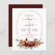 Chic e Moderno Queimado Laranja e Flores de Rosa Flor Burgundy Boho Bohemian Botânico Eucalyptus Greenery Watercolor Faux Gold Foil Frame Autumn (Queda), Winter, Primavera ou Summer Wedding Invances - inclui uma bela e elegante tipografia de roteiro para a celebração especial do dia do casamento.