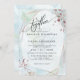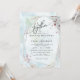 CONVITE DE CASAMENTO | Jaspé pintado à mão em tons pastéis de azul poeirento pálido e acentuado com pistas de verde-claro - acentuado com pepitas de ouro rosa nos cantos e uma moldura de cristal em ouro rosa com um centro branco puro que destaca o texto do convite. O texto de caligrafia manuscrito na diagonal "junto" no topo permite um atraente pessoal - fácil de personalizar a modelo.