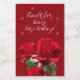 Vinhos de casamento com rosas vermelhas. Use garrafas de vinho pessoais grandes ou pequenas para obrigados convidados na recepção. Três caules de rosa vermelha com folhas verdes decoram rótulos brancos com texto preto. Inclua "obrigado" com nomes e data. Cada linha é um modelo, então use como quiser. Corações cor-de-rosa cobrir fundo.