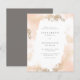 Se você está atrás de design moderno e chique, então esse convite de casamento é perfeito para você. Apresentando uma lavagem de aquarela cor-de-rosa embebida que enquadra seus detalhes. O pó de folha de ouro torna o design mais interessante e na moda. Sua informação de casamento é mostrada em uma tipografia simples e elegante. Como parte da seleção do orçamento aqui no Zazzle, estes convites não vêm com envelopes nem ajustado de forma suave em um envelope de tamanho padrão. O tamanho mais próximo é A6, mas haverá um intervalo de aproximadamente meio polegada. Se não se importa com a falta de humor, você poderia usar envelopes A6 tão disponíveis. Caso contrário, esse design pode ser transferido para um formato padrão 5x7 (que vem com envelopes) usando a ferramenta de transferência design. Como guia geral, a partir do momento do escrevendo, 100 convites orçamentários (incluindo um desconto por volume) custariam cerca de US$ 39, enquanto 100 convites padrão 5x7, incluindo envelopes, custariam aproximadamente US$ 135. Sua quilometragem pode variar dependendo dos códigos de promocionais disponíveis do Zazzle, das vendas em todo o site ou das mudanças nos preços.