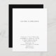 Mínimo espaço branco simples convite para casamento preto e branco.