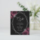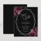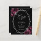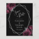 Este elegante casamento moderno salva o cartão de data apresenta uma imagem geométrica prateada decorada com buquês florais de burgundy e prata em fundo preto. O texto personalizável combina a escrita manual imétrica de cinzas prateadas, a placa de cobre e as fontes itálicas. O reverso é preto sólido.
