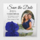 Esses cartões salve a data magnéticos são uma maneira maravilhosa de deixar seus amigos e família saberem sobre seu próximo casamento. Eles apresentam um belo design que é romântico e elegante com um solteiro azul real ou rosa de cor cobalto, que se apresenta durante , refletindo em uma piscina de água com ondas e ondulações e sua foto em um quadro em forma de oval em um fundo branco clássico. A legenda: Salvar a data com espaço para seus nomes, data e local.