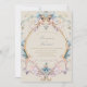 Mande sua vintage com este convite de casamento temático da era da vintage opulente. Apresentando criaturas elegantes em volta dos seus nomes. Creme macio com tons de roxo azul e pinks em uma matiz pastel refletindo o tempo de regência. Vintage e design de casamento elegante.