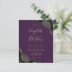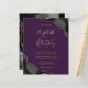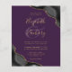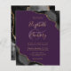 Uma design de agate de cor-de-água preta, aparada com brilho sujo de ouro, aparece em dois cantos deste elegante design. Personalize-o com os nomes dos casais em um guião de escrita manual dourada sobre um grande e roxo. Adicione os detalhes do casamento em uma placa colorida dourada e fontes itálicas em um fundo roxo. O verso apresenta um design de agate preto e dourado correspondente. NOTA: os envelopes não são incluídos automaticamente nestes convites de orçamento, portanto lembre-se de escolher a opção "envelopes brancos"!