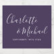 Design de casamento roxo de assinatura elegante personalizado com nomes de estilo de assinatura e sua data de casamento especial. Projetado por Thisnotme©