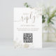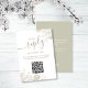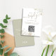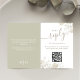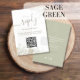 Este design apresenta um código QR para casamentos, seus convidados podem RSVP on-line com este mínimo, cartão de gabinete, um simples verde de sábio, com nosso site, resposta RSVP de orçamento