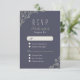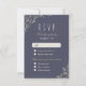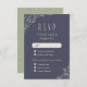 Design floral de ornamentado desenhado à mão sobre fundo de marinho, sofisticado e elegante, perfeito para casamento de jardim ao ar livre, país, casamento rústico; ou casamento vintage, inverno ou verão. Esquema de cor natural, verde-sábio, marinho escuro e bege claro. Personalize seu próprio cartão RSVP para seu casamento! Veja todas as peças correspondentes nesta coleção floral rústica de Jardim abaixo.