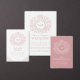 Mão cor-de-rosa e poeirenta desenhada crescendo matrizes de arte botânica RSVP. Design simples circulando suas próprias iniciais de monograma design. Em tons bonito de rosa pincelado e cinzas em branco. Convites correspondentes e outros itens correspondentes e opções de cores disponíveis. © Desenho original em folha e design por Sarah Trett para www.mylittleedenweddings.com em zazzle.
